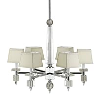 Discounts Candice Olson Cluny 6 x 40-Watt Light Chandelier, Chrome with Strong Crystal Accents and Cream Poly/Silk Shades Manufacturer: Candice Olson Lighting Bulbs Not Included Dimensions: 63" Height x 24" Diameter 6 x 40-Watt lights candle base Crystal with chrome base and cream poly/silk